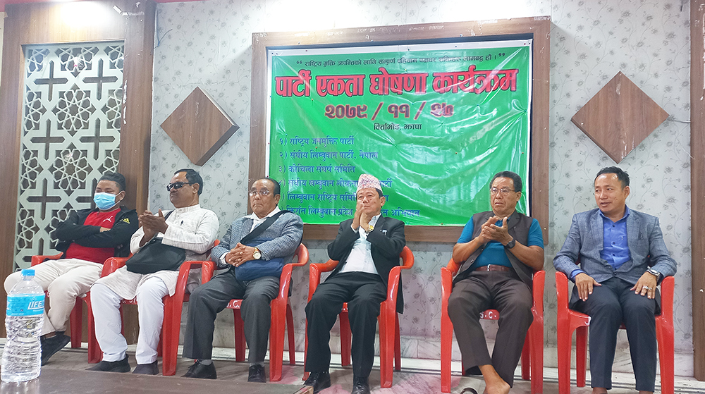झापाको बिर्तामोडमा पार्टी एकता घोषणा कार्यक्रमको आयोजना गरी राष्ट्रिय जनमुक्ति पार्टीका अध्यक्ष केपी पालुङ्वाको संयोजकत्वमा विभिन्न छ वटा पहिचानवादी पार्टीहरुबीच एकता भएको हो ।